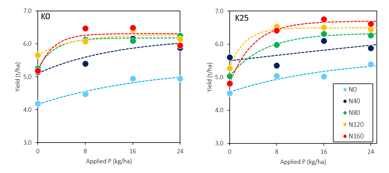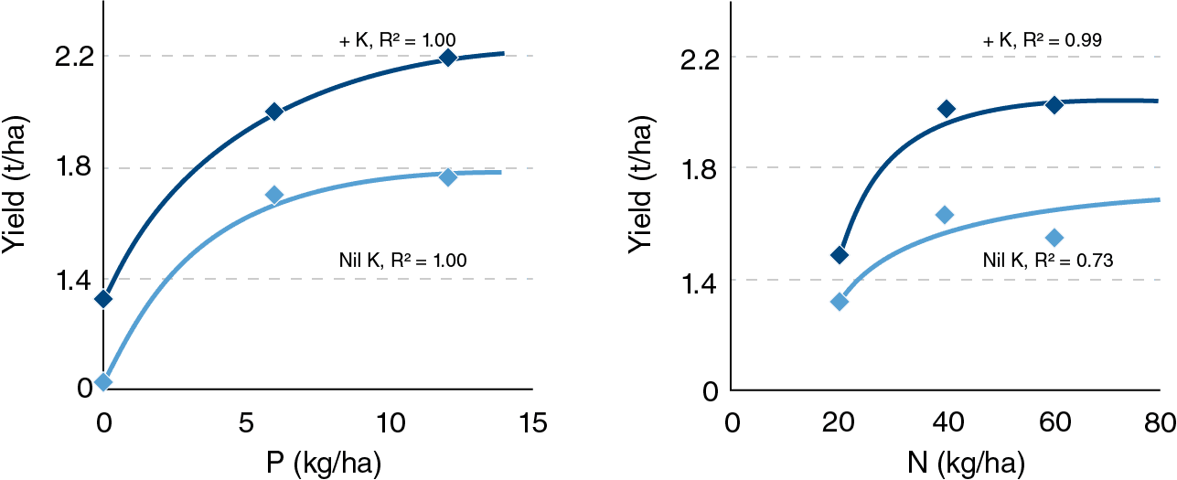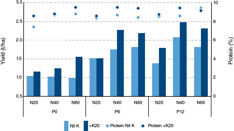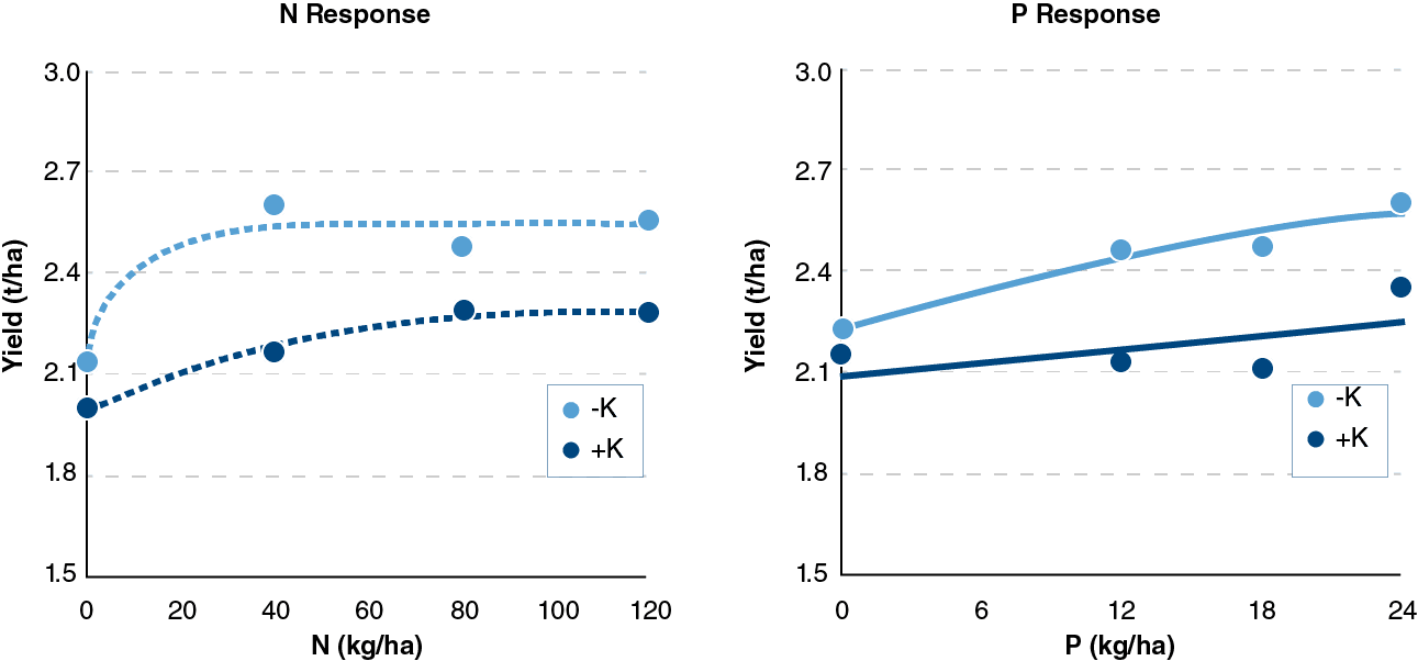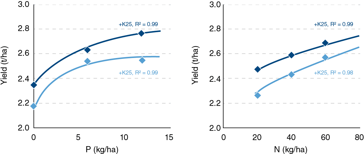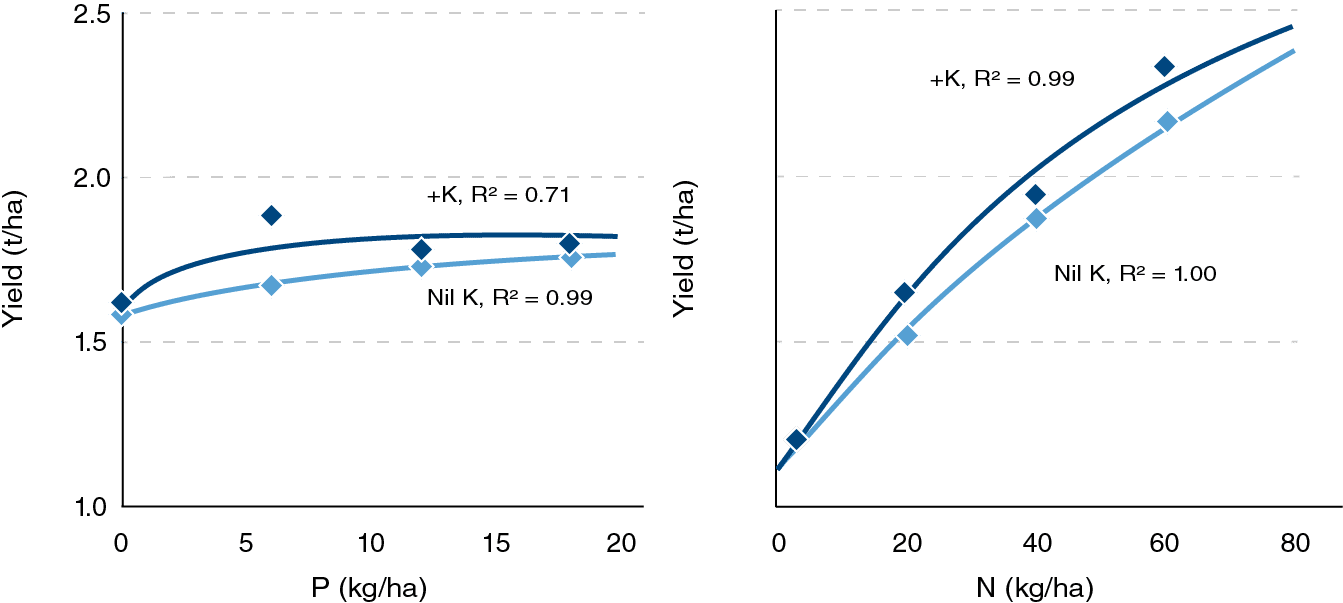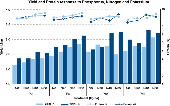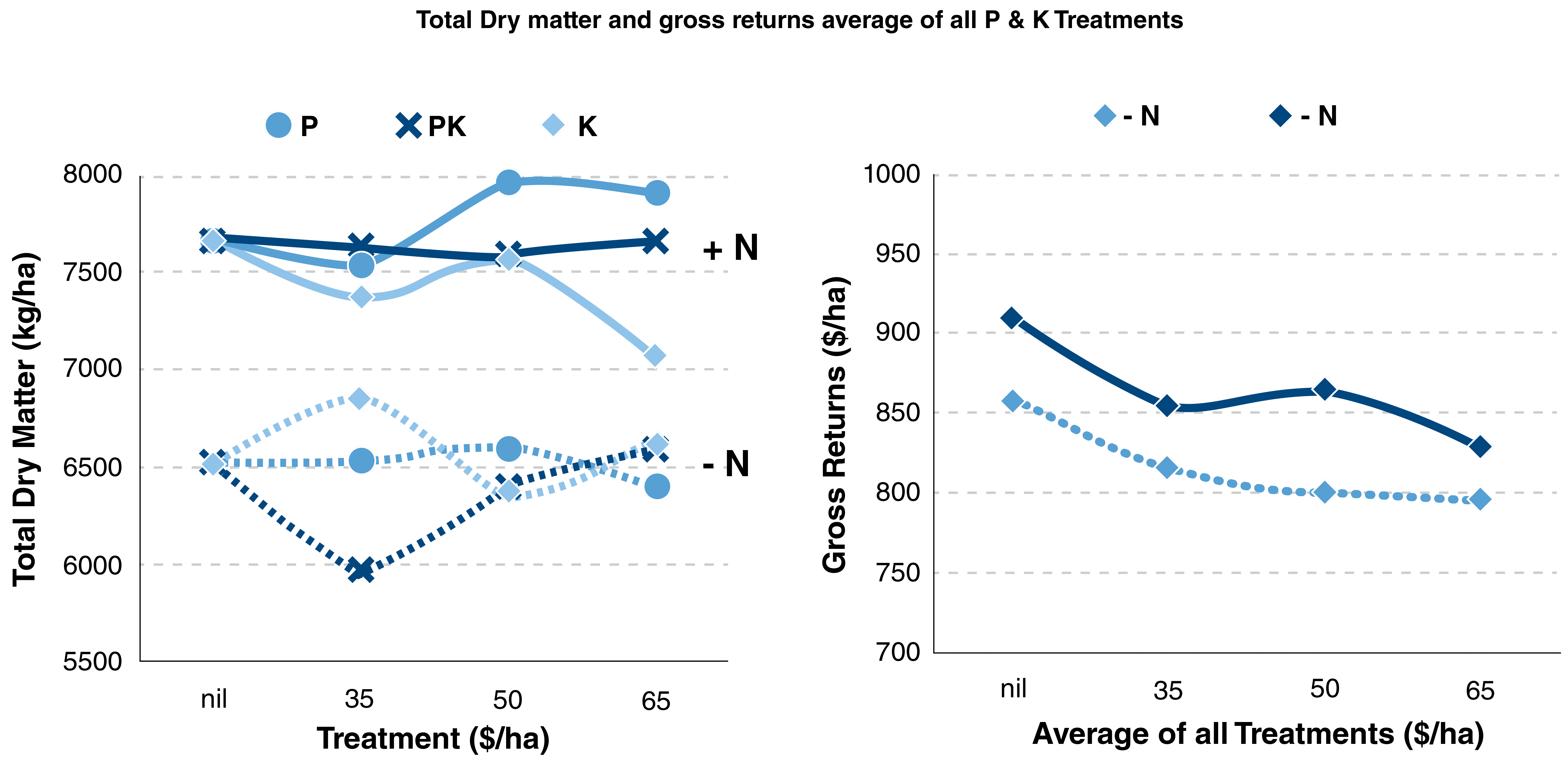 Average yield and gross margin response curves suggested phosphorus was optimised at 15 kg/ha and potassium at 10 kg/ha.