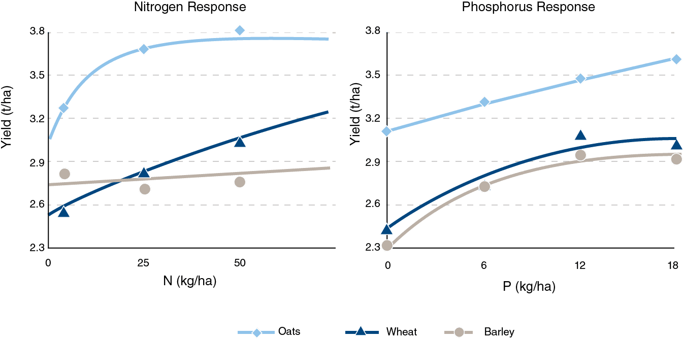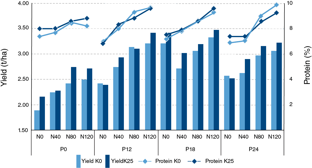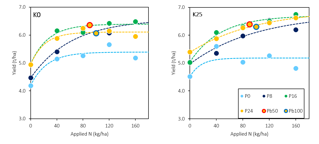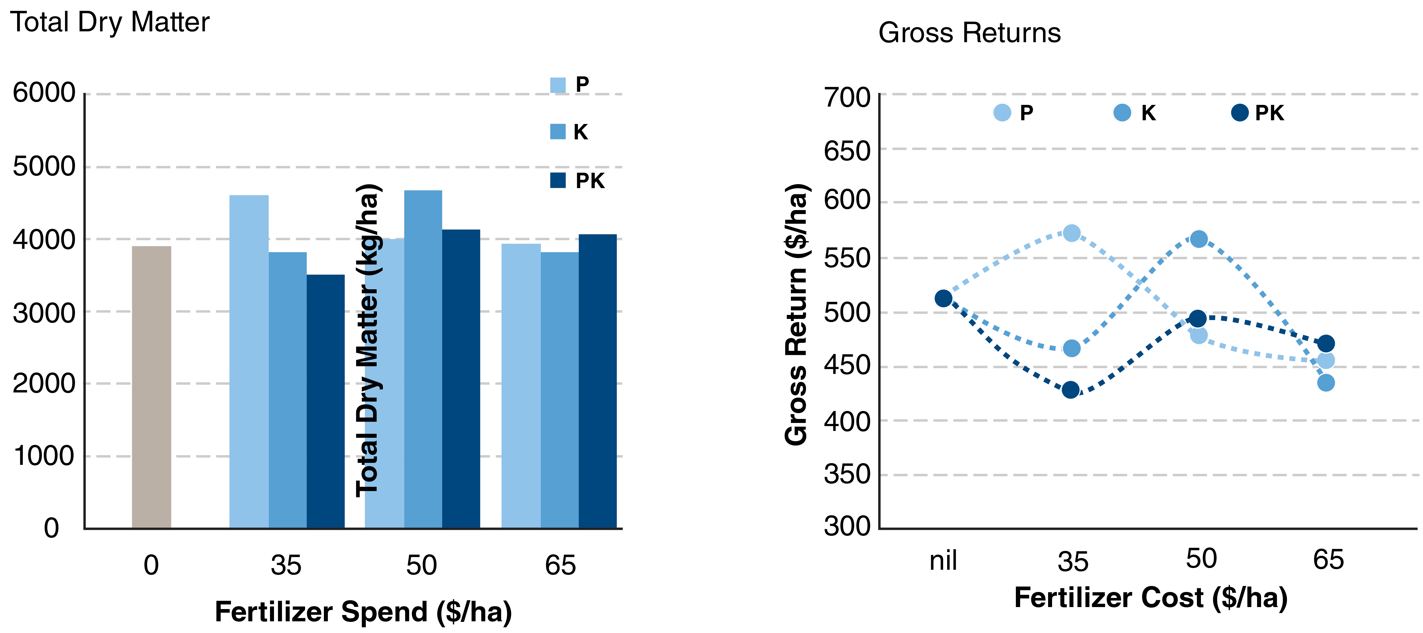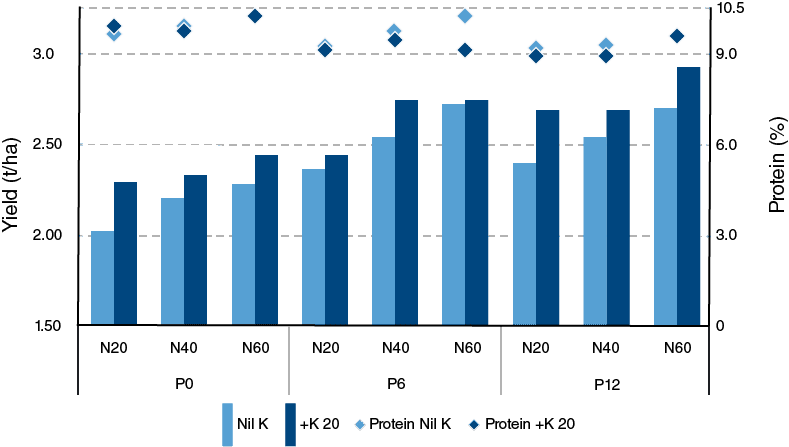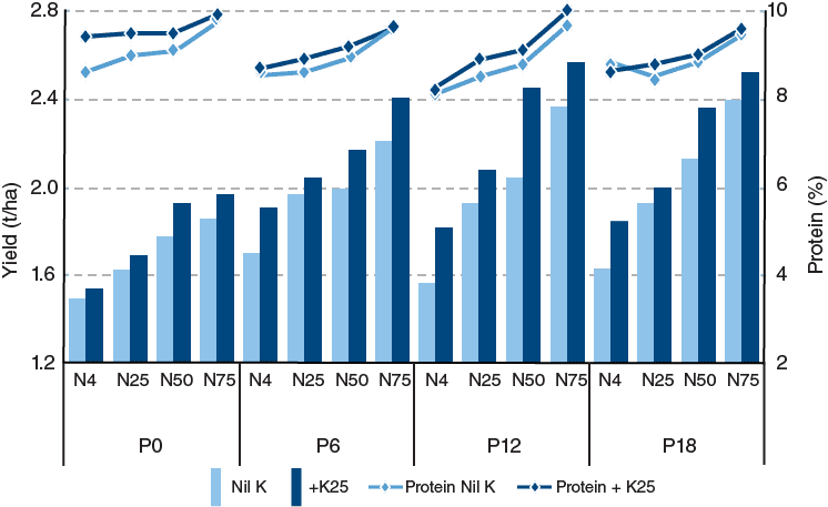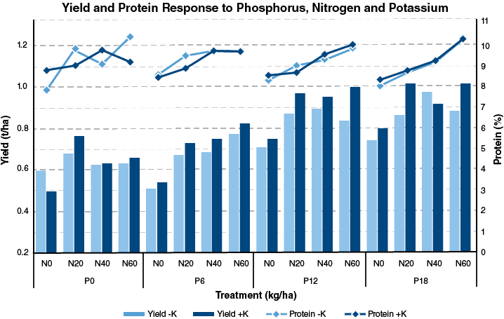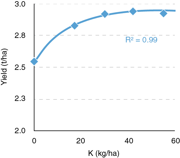 Average yield and gross margin response curves suggested phosphorus was optimised at 15 kg/ha and potassium at 10 kg/ha.