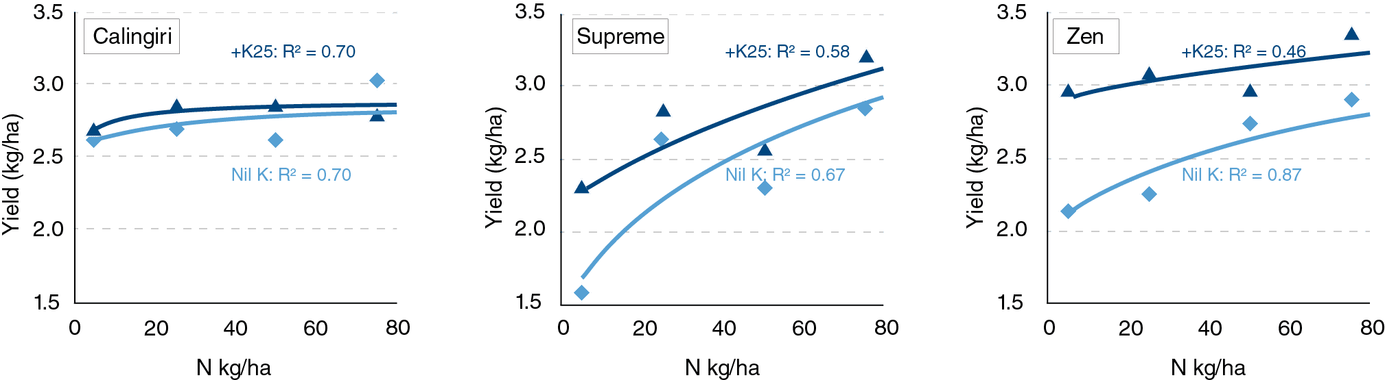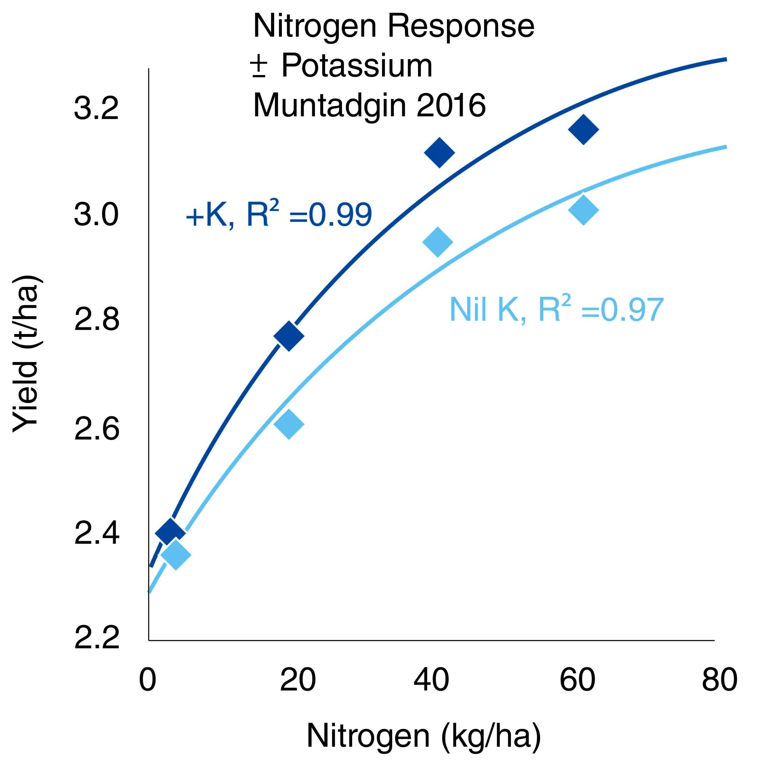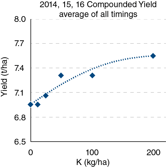 - A small yield increase between nil K and 15kg K/ha was not significant.