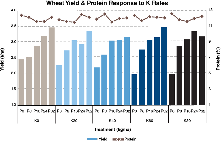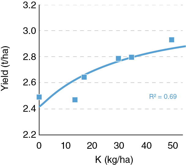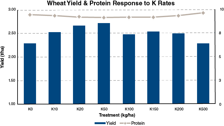 Under these conditions, despite the minimal K response there was no loss in returns relative to the nil treatment from the application of K up to 20 kg/ha.