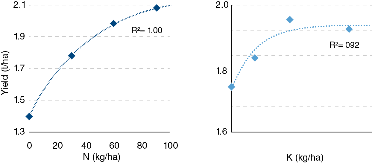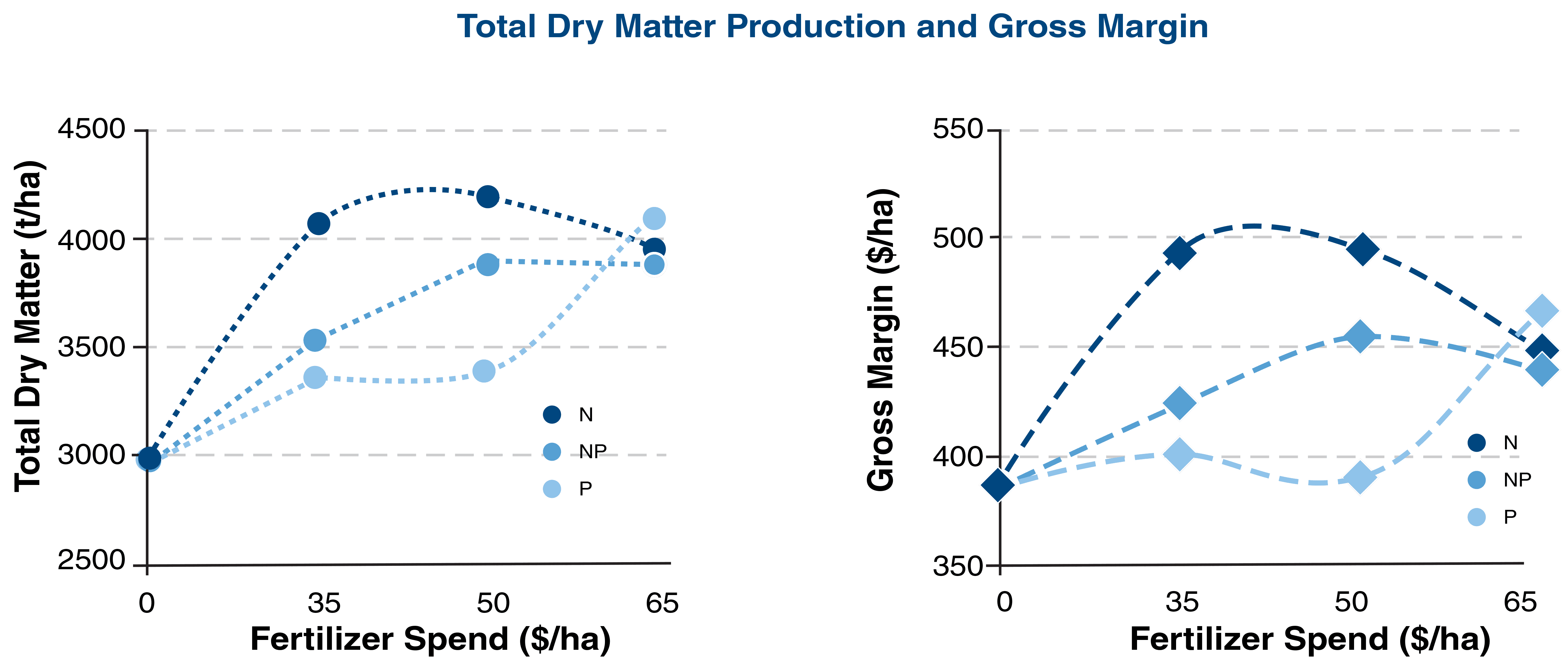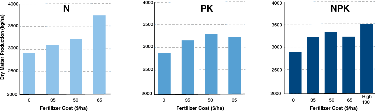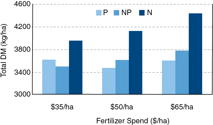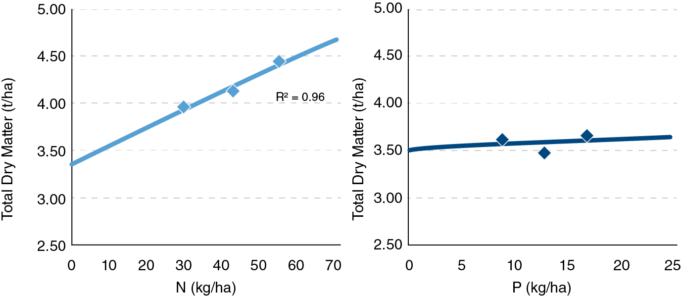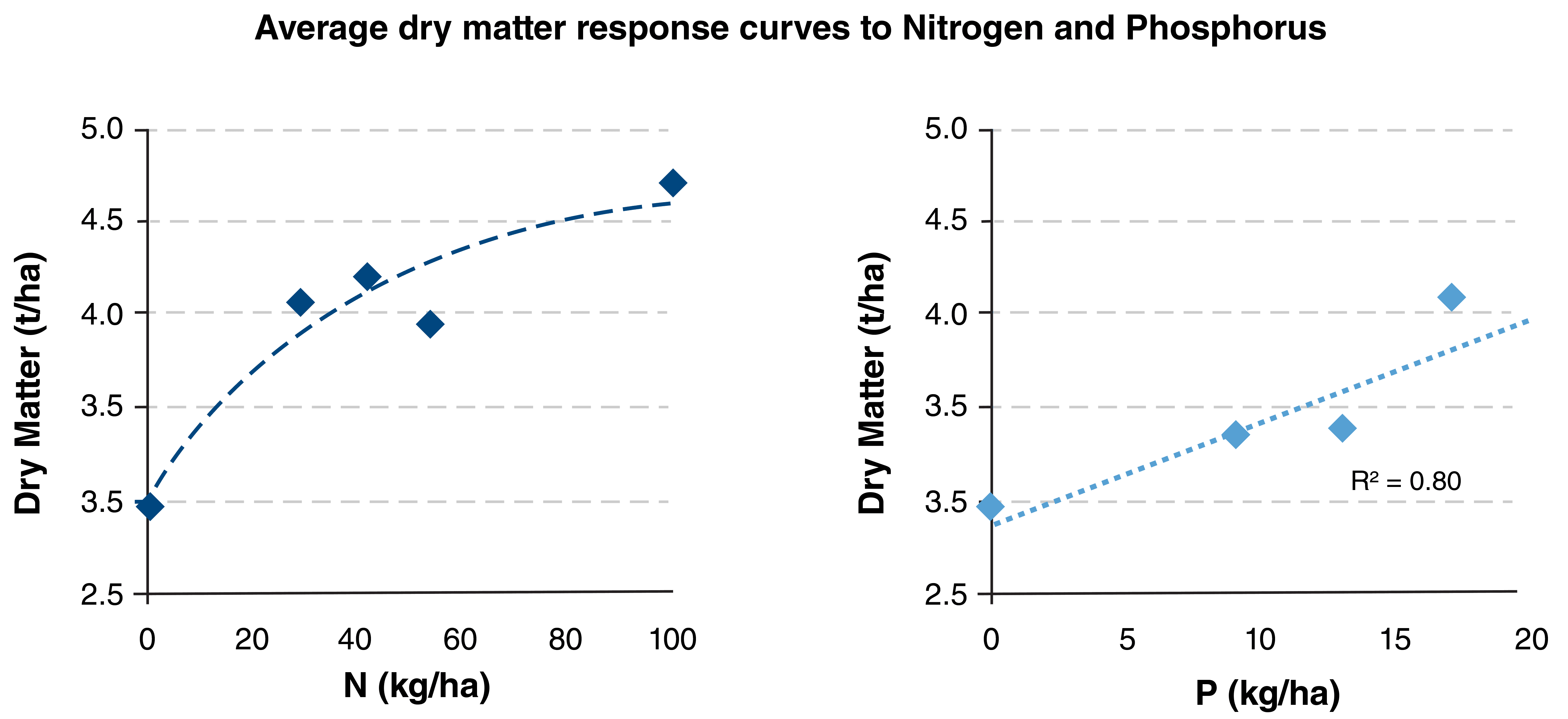 - A significant dry matter response was measured for nitrogen, but not for phosphorus or potassium.