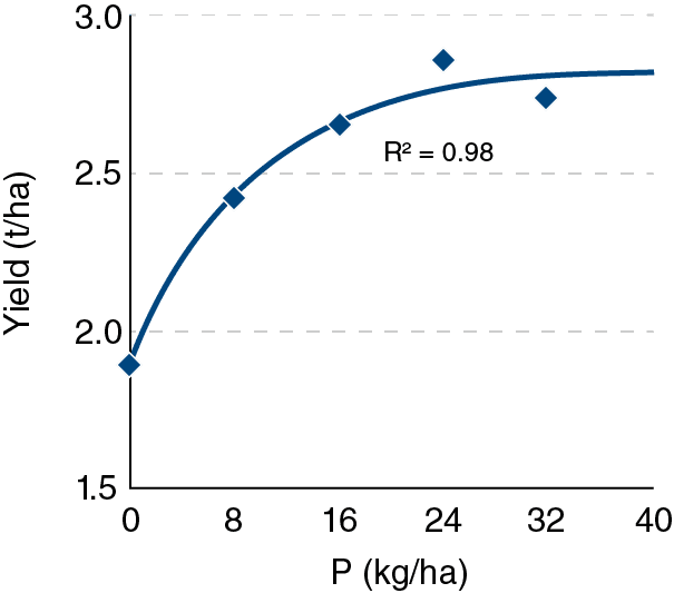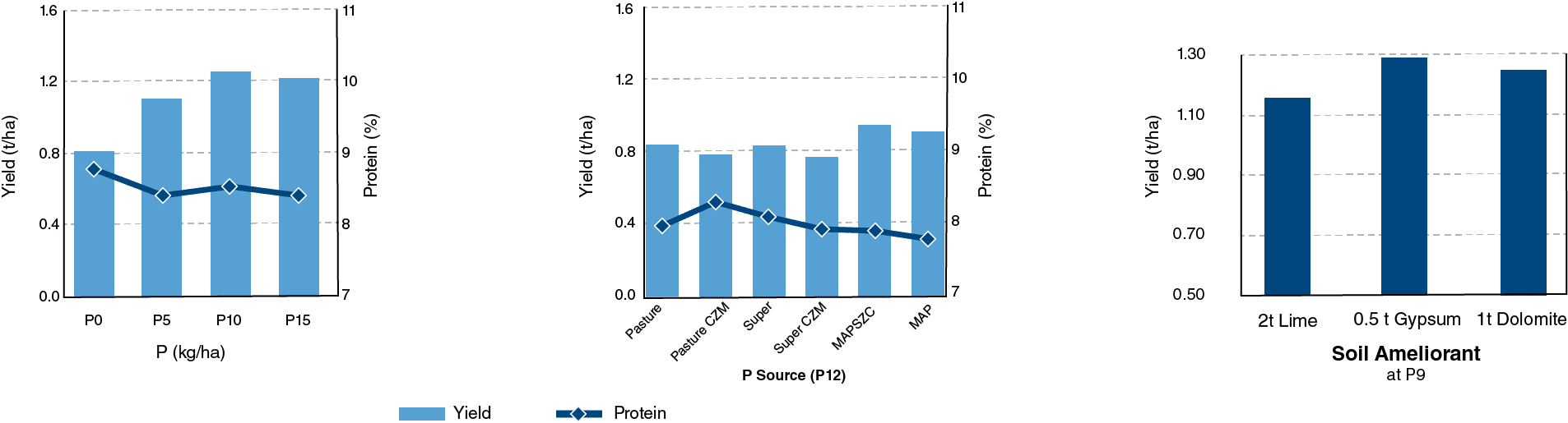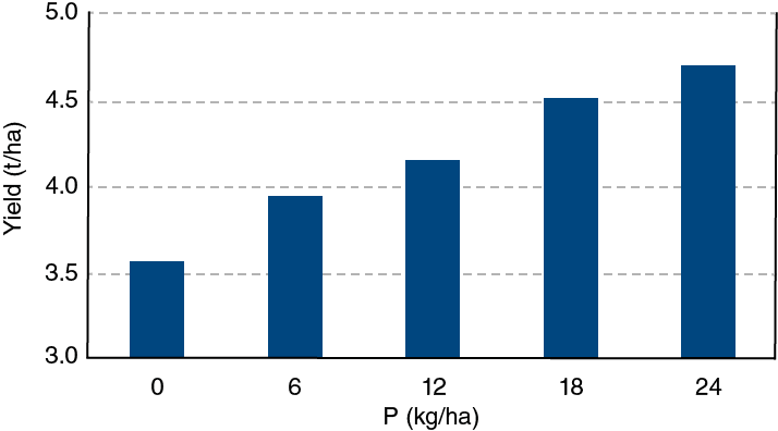 - Yield ranged from 2.3t/ha where no P was applied to 3.6 t/ha where 25kg P/ha was applied.