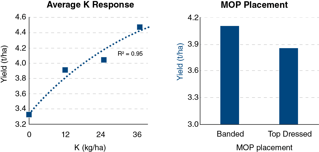 MOP can have a toxicity effect on germinating crops, especially in low rainfall seasons.