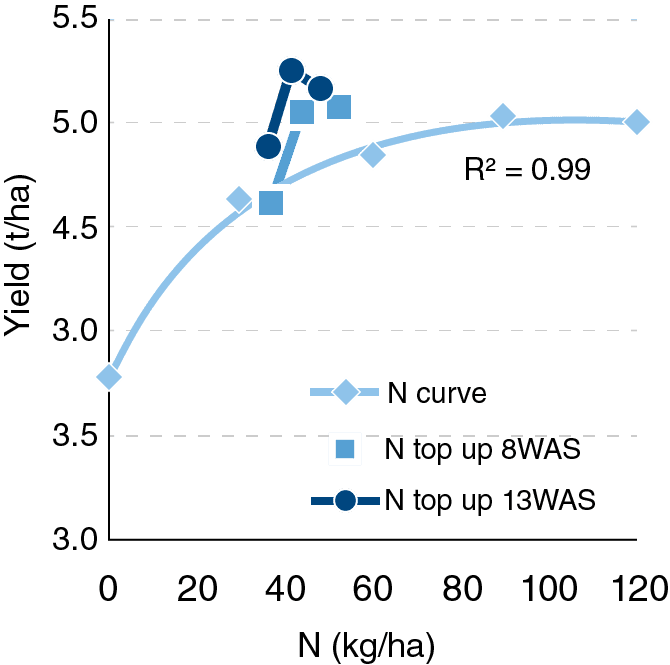- For each N application it rained shortly after, minimising risk of ammonia volatilisation.