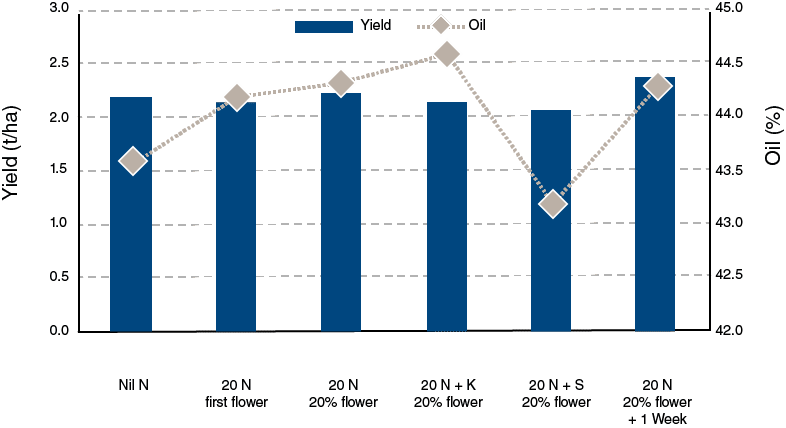 - Yields ranged from 1.8t/ha to 2.1t/ha, with no significant differences between individual treatments, so most detailed aspects of the strategies could not be conclusively analysed.
