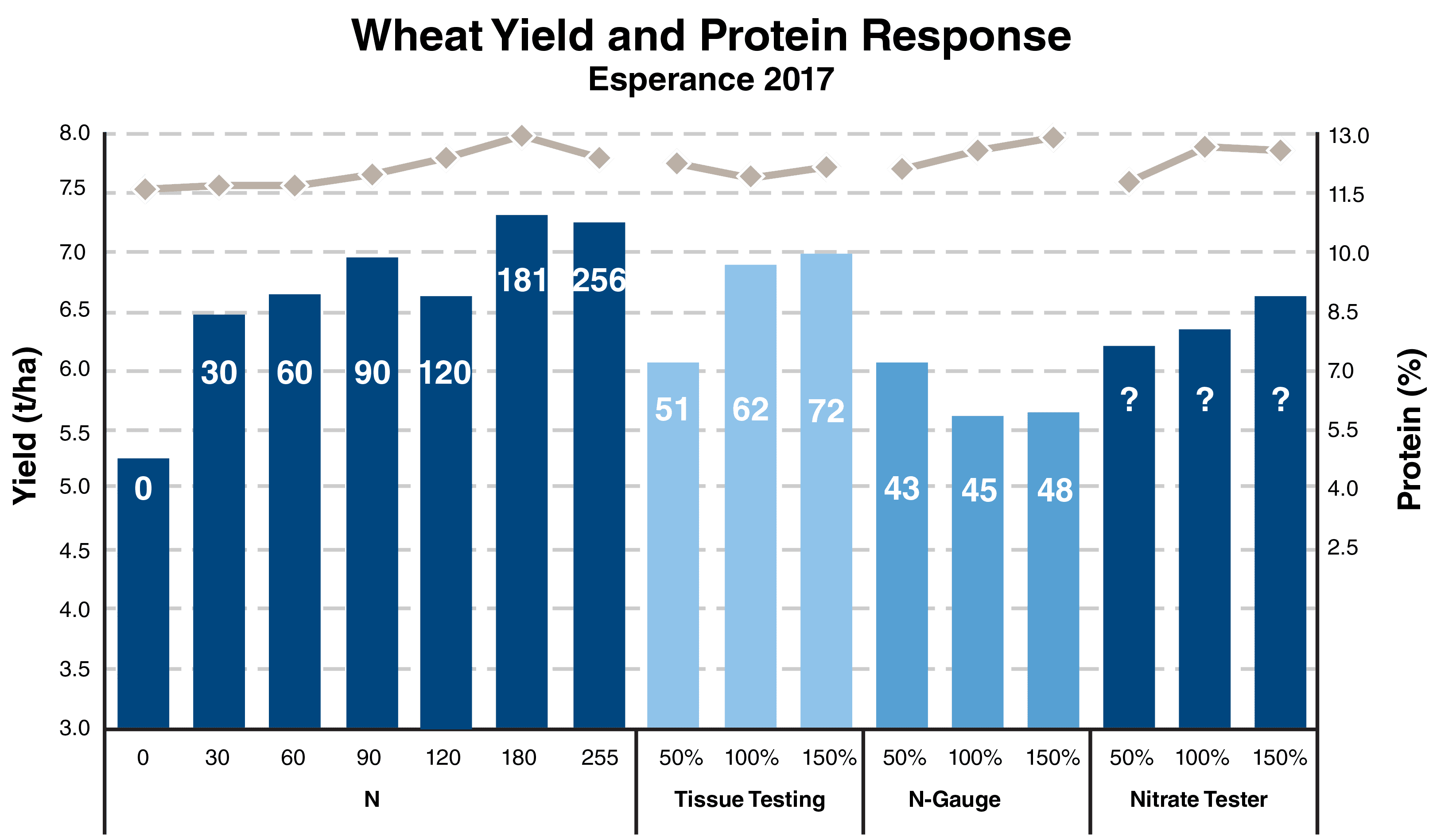 Applying high rates of N to achieve elevated wheat yields whilst assessing the accuracy of N-rich strips and tissue testing to guide in-season N application.
