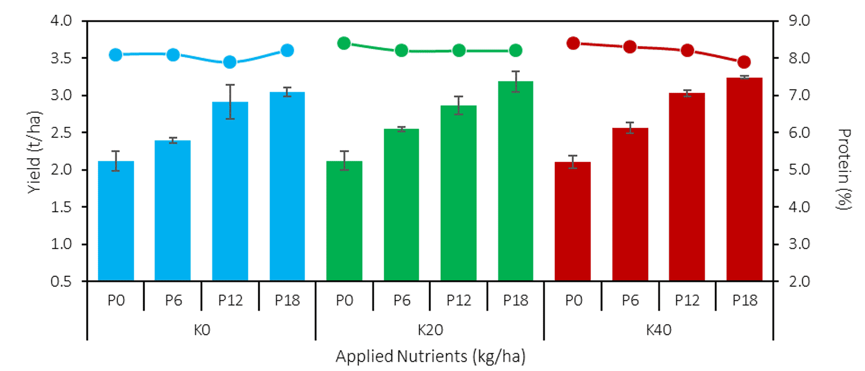 - There was a significant yield response to phosphorus but not to potassium under these conditions.