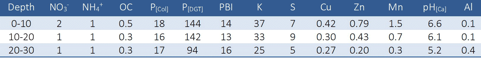 Table 1: Pre-trial soil nutrient analysis.